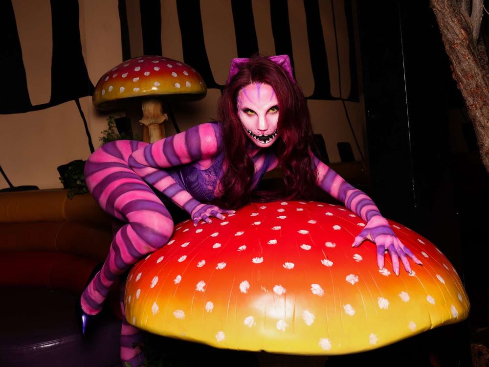 Аликс Чеширийн муурны дүрд хувирчээ. Тус дүрд хувирахад нийтдээ 6 цагийг зарцуулсан байна.