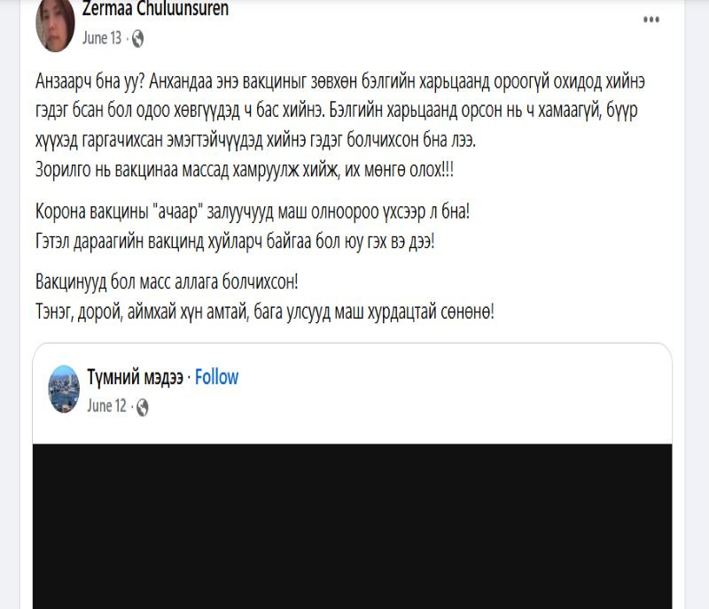 Вакцинтай холбоотой худал мэдээллийг хэн хэрхэн түгээснийг мэдэхээр сошиал орчныг тандан, ажиглалаа.