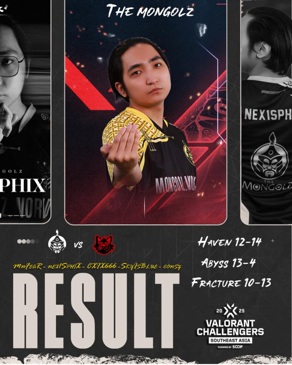 VALORANT Challengers тэмцээнд хоёр дахь удаа оролцож буй Монголын The MongolZ баг А хэсгийн хоёр дахь тоглолтоо Xipto Esports багтай хийж 1-2 (Haven 12-14, Abyss 13-4, Fracture 10-13) харьцаагаар хожигдлоо.