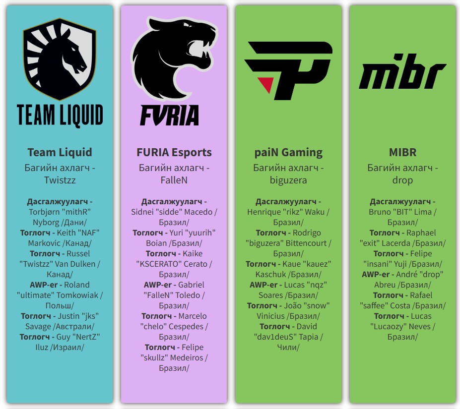 Хоёр баг өмнө нь дөрвөн тэмцээний хүрээнд таарч 12 map тоглосноос 7-д нь Баянбатын "maaRaa" Эрдэндалай дасгалжуулагчтай монгол залуус ялсан байна. Тэд хамгийн сүүлд "IEM Rio 2024" тэмцээний үеэр учраа таарахад The MongolZ 2-1 харьцаагаар хожсон юм.