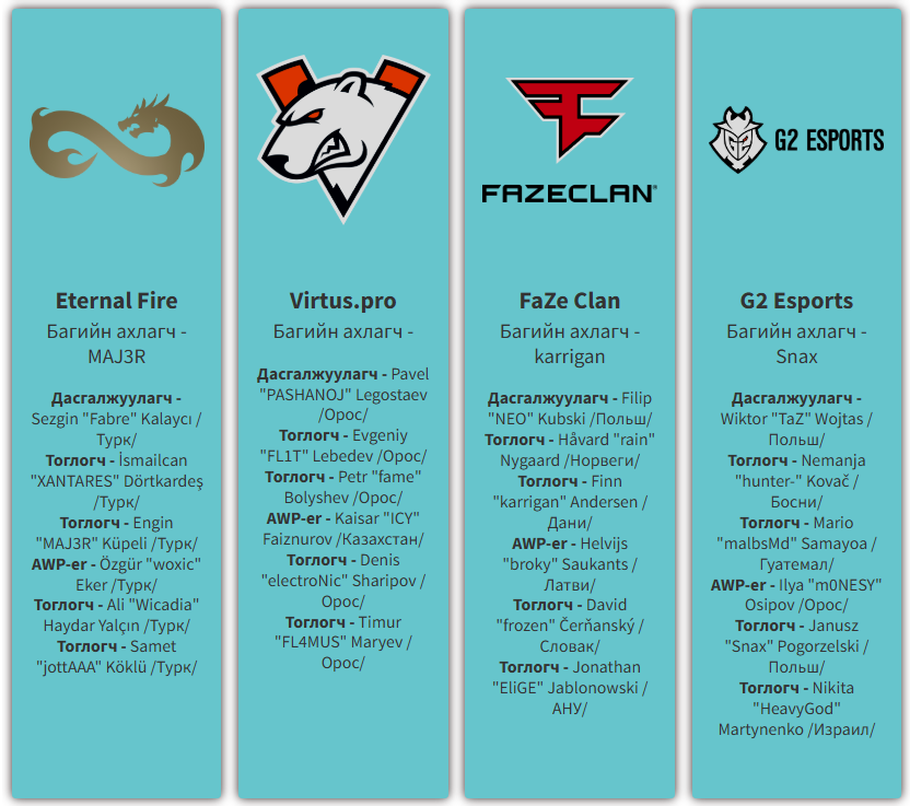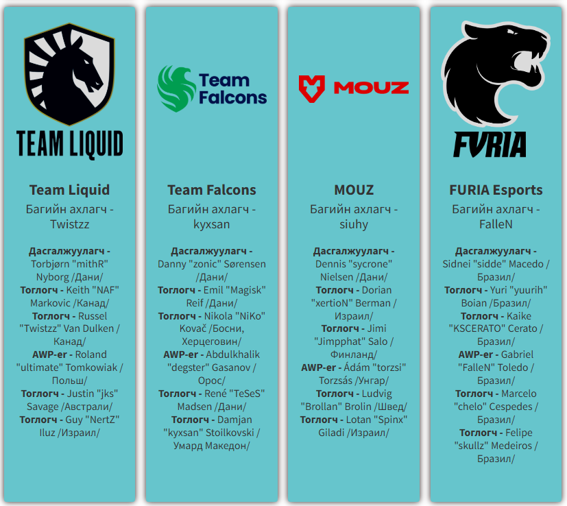 Тэмцээний эхний 12 багийг дэлхийн чансаагаар шууд урьсан бөгөөд тэр дунд Монголын "The MongolZ" баг багтаж буй.