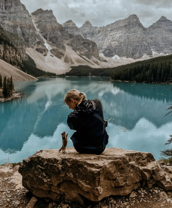 "Канадын Морайн нуурын дэргэд найз бүсгүйнхээ зургийг авч байтал гэнэт энэ жижиг амьтан хамт зурган дээр орчихсон!"