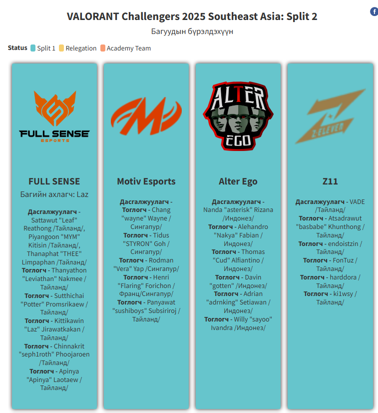 $50,000 (173.7 сая төгрөг) шагналын сантай "VALORANT Challengers 2025 Southeast Asia: Split 2" тэмцээн өнөөдөр эхэлнэ.