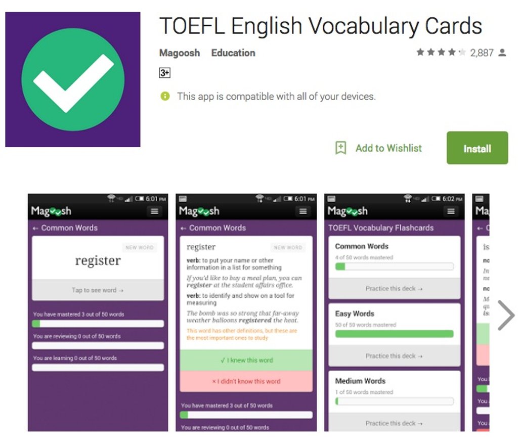 Үгсийн сан болон унших чадварт тань хэрэгтэй энэхүү апп нь маш олон тайлбар, жишээнүүдээс бүрдсэн “flashcard”-ийг өөртөө багтааснаараа онцлог юм. Цээжлэх үгсийг тань түвшинээр нь ангилж өгсөн учир таны мэддэг үгс таарвал дараагийн түвшин руу шилжих боломжтой.