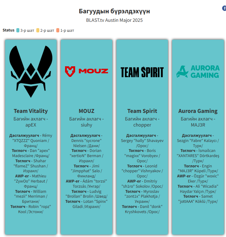 Тэгвэл уг "BLAST.tv Austin Major 2025" тэмцээний талаарх тайлбар мэдээллийг хүргэж байна.