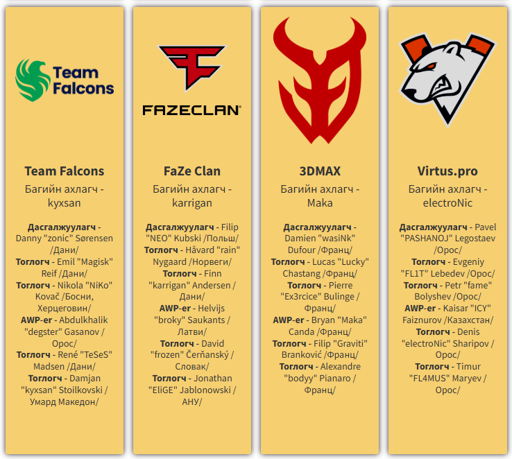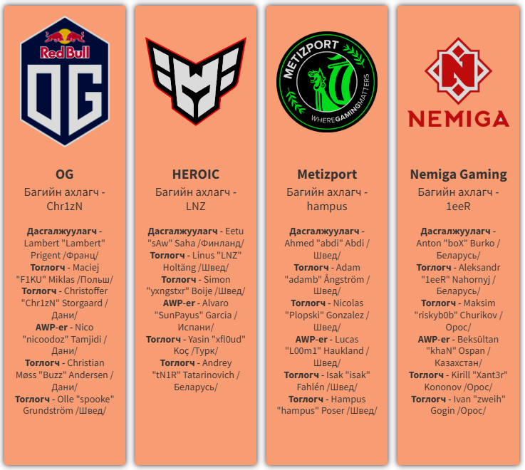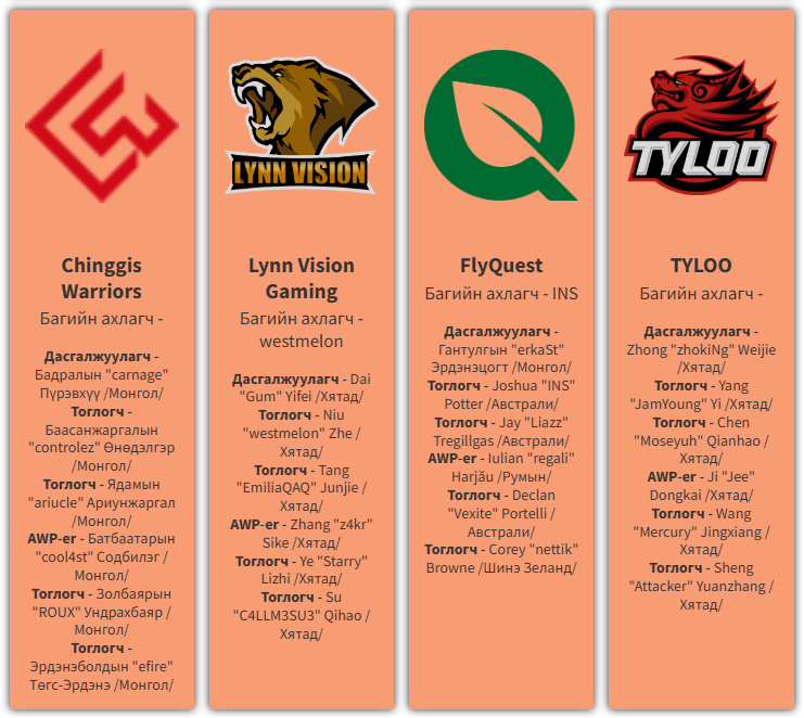 Тэгвэл анх удаа sticker гаргахаар болсон Монголын "Chinggis Warriors" багийн тоглогчид өмнө нь sticker гаргаж үзээгүй. Тэдний хувьд энэ тэмцээн анхны S-Tier түвшний (Хамгийн өндөр түвшин) тэмцээн байх болно.