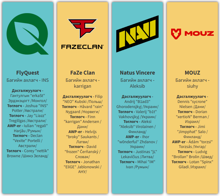 Ийнхүү монгол залуус тэмцээний шигшээ шатанд тоглох эрхээ авч байна. Тэд маргааш 14:15 цагаас "MOUZ" багийн эсрэг тоглож хэсгийн хэддүгээр байраар шалгарахаа шийднэ.