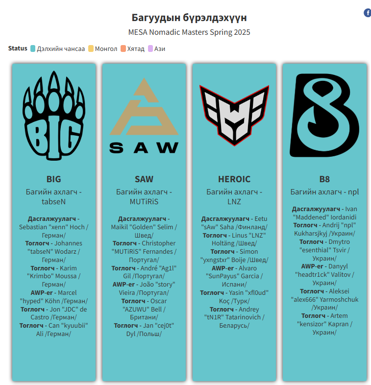 Valve дэлхийн чансааны #16 Португалын "SAW", #38 Германы "BIG" болон "BLAST.tv Austin Major 2025" тэмцээний эрхийг аваад буй #25 Украины "B8", #28 "HEROIC" багуудыг анх удаа Монголд харна.