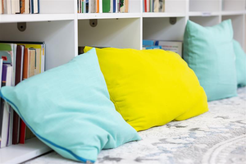 Сурагчид дизайн, технологийн багш О.Батмагнай, Э.Батгэрэл багш нартай хамтран олбог, дэр гээд оёж, хатгах юу л байна, бүгдийг өөрсдөө хийж номын сангийн хэрэглэгдэхүүн бүрд сурагчдын минь сэтгэл шингэсэн гэж хэлж болно.