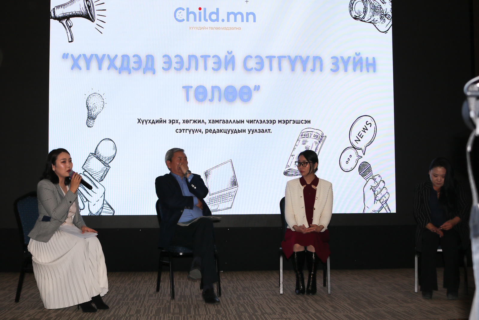 Уулзалтад хүүхдийн талаар дагнан сурвалжилдаг хэвлэл мэдээллийн байгууллага, редакцуудаас өөрсдийн туршлага болоод тулгамдаж буй асуудлын талаар “Хүүхдийн төлөө сэтгүүл зүйн өнөөгийн төрх” сэдвээр хэлэлцсэн юм.