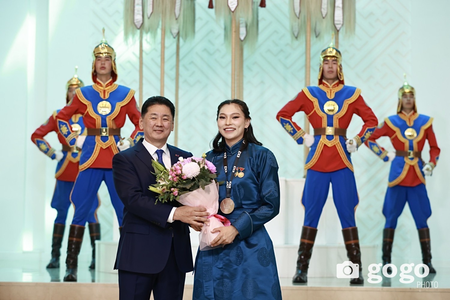 Хаана эв нэгдэл байна. Тэнд хүч чадал оршдог. Эх орон, элэг нэгтнүүдээ баярлуулан, багийн спортын дэлхийн аваргын тэмцээнээс мөнгөн  медаль үзүүлж, бахдам сайхан амжилт гаргалаа. Багийн арын албаныхан, Монголын сагсан бөмбөгийн холбоо, 3х3 сагсан бөмбөгийн холбоо, аав ээжид нь баяр хүргэе. Олимпоос медаль авах болтугай, Дэлхийн аварга болохыг хүсэн ерөөе. Монгол эмэгтэйчүүд ямар хичээл зүтгэлтэй байдгийг та бүхэн харуулж, хүүхэд залууст зөв үлгэр дуурайл үзүүлэн тул Монголын төр та бүхний хөдөлмөрийг  өнөөдөр үнэлж байна. Монгол Улс мөнх тэнгэрийн дор мандан бадраг гэв.