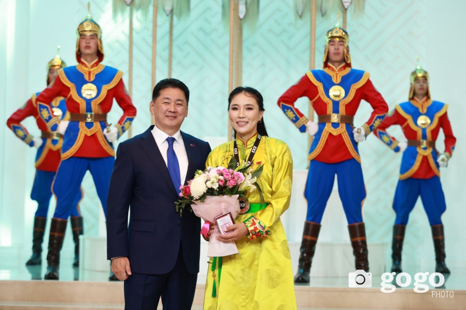 Ерөнхийлөгч У.Хүрэлсүх "Та бүхэн эх орныхоо нэр хүнд, монгол хүний үнэ цэнийг өндөр түвшинд хүрлээ. Дэлхийн аваргын тэмцээнээс мөнгөн медаль хүртсэн тамирчид, багш дасгуулагч та бүхэнд Монгол түмний нэрийн өмнөөс чин сэтгэлийн талархал илэрхийлье.