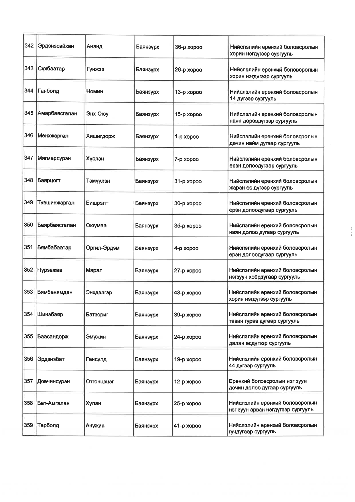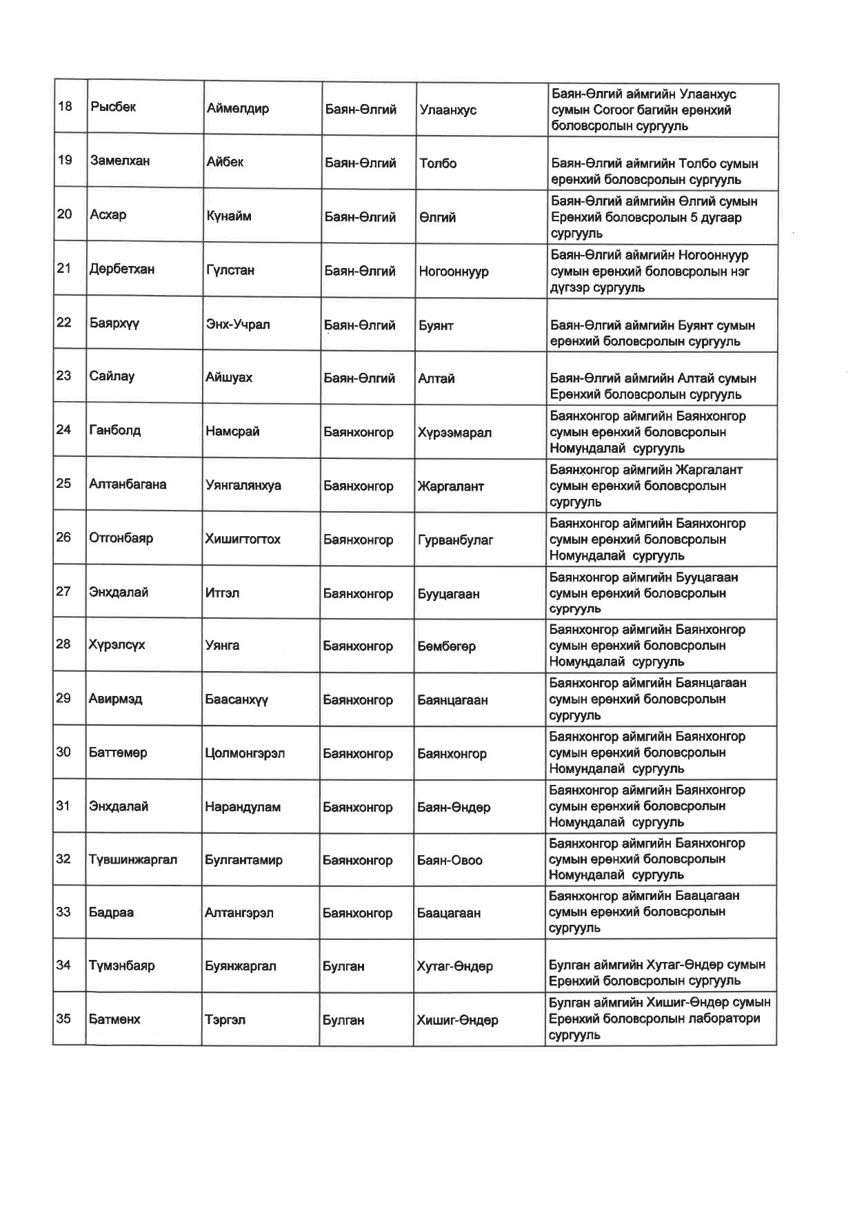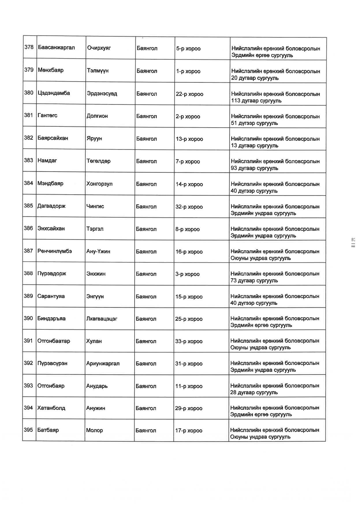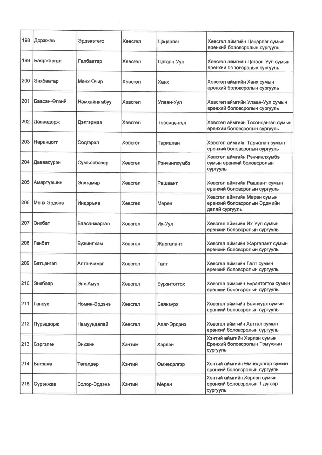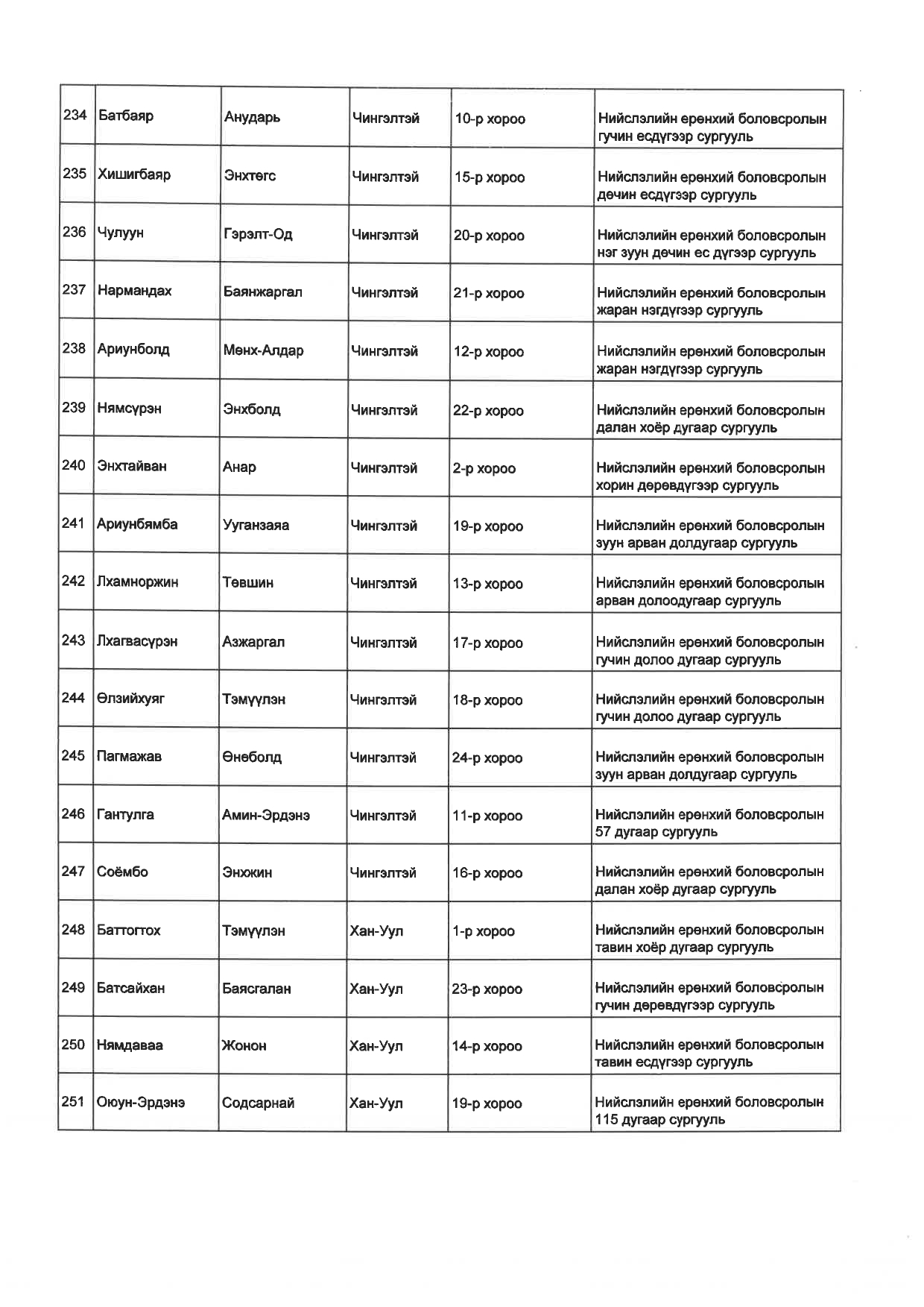 Автоматаар шүүж гаргасан жагсаалтыг Нийслэлийн боловсролын газар, аймгуудын Боловсрол, шинжлэх ухааны газраар баталгаажуулан ирүүлсэн Боловсролын яамны 1/3817 тоот албан бичгийг үндэслэн 404 хүүхдийн нэрийг зарлаж байна.