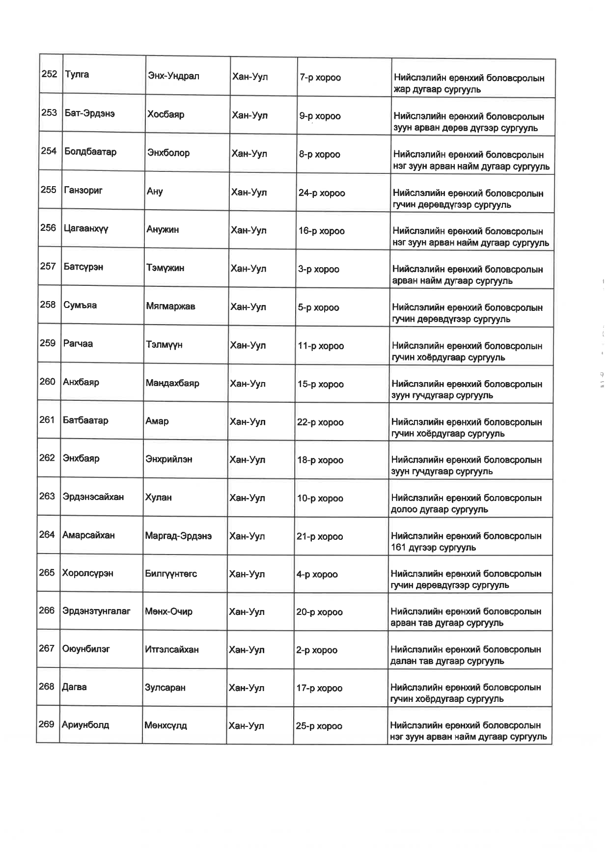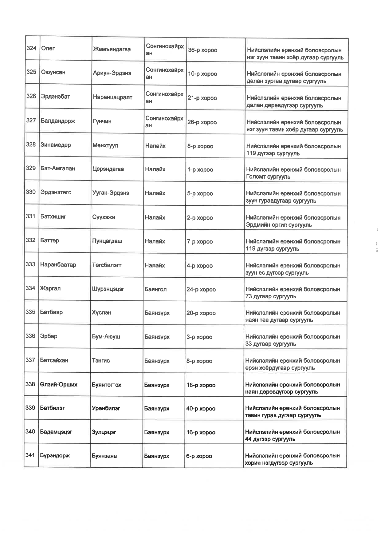 Жагсаалтад багтсан хүүхдүүд МУИС-ийн Хичээлийн II байр, өргөтгөл 307 тоотоос болон 99949945, 99889379 дугаарт холбогдож мэдээлэл авах боломжтой.