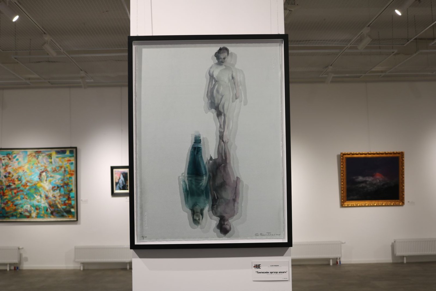 “Хүрээлэн буй хязгааргүй” үзэсгэлэнг үзэхдээ би “Бүжигчин” гэх зургийн өмнө хэсэг зогссон юм. Усны тусгалд илрэх дүрс ганцаардалд ч нэгэн төрлийн тайтгарал бий гэдгийг илтгэх шиг. Үзэсгэлэнд дэлгэсэн энэ мэт хүчтэй өгүүлэмжтэй тусгал бүтээлүүд анхаарал татаж уран бүтээлчтэй нь ярилцах шалтгаан болов. Дүрслэх урлагийн хүрээлэл, энэ салбарыг сонирхдог хүмүүс дунд зураач Ц.Ган-Эрдэнийн давтагдашгүй арга барилыг мэдэхгүй хүн үгүй аж.