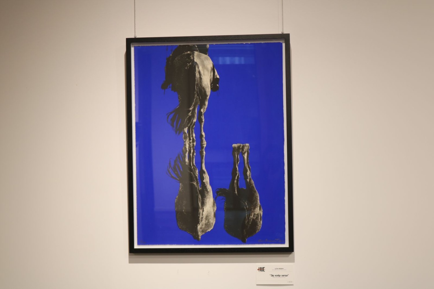 "Эр хоёр загал" бүтээл. Монголчууд эрт дээр үеэс мөнх хөх тэнгэрийг бэлгэддэг учраас энэ өнгийг шингээсэн. Хөх өнгө бол огторгуйн өнгө. Унаган үнэнч морио унасан эзэн. Морь нь бодож байгаа юм миний эзэн хойд насандаа надтай адилхан морь болоод яваасай гэж. Байгалийн зургийг олон дүр, өнгө өгүүлэмжээр илэрхийлэхээс илүү би зураасан замаар л уудам тал хээрийг дүрслэх дуртай гэв.
