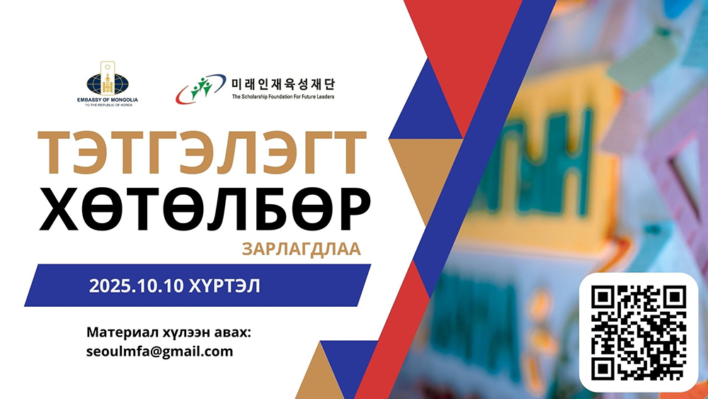 Scholarship Foundation for Future Leaders сангийн зүгээс энэ жил БНСУ-д инженерийн болон нарийн мэргэжлээр магистр, докторын хөтөлбөрт суралцаж буй 4 монгол оюутанд тэтгэлэг олгохоор болоод байна.