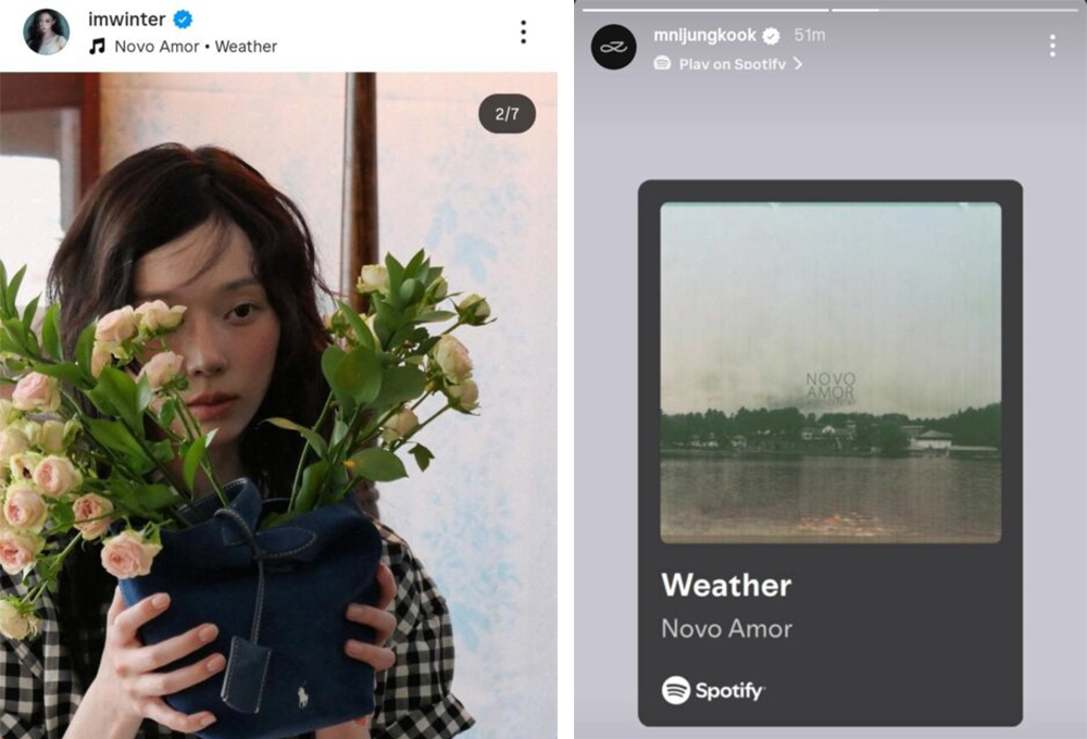 Наймдугаар сарын 09-нд Winter инстаграм постныхоо арын дэвсгэрт Novo Amor-ийн “Weather” дууг сонгосон байсан. Хэдэн өдрийн дараа буюу наймдугаар сарын 14-нд Jungkook мөн л Novo Amor-ийн “Weather”-ийг инстаграм story-доо нийтэлжээ.