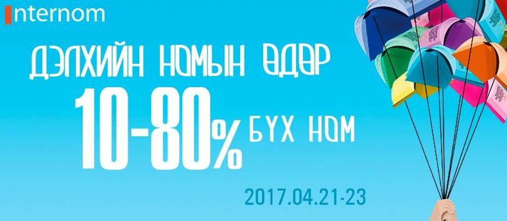 "Интерном" номын дэлгүүр дөрөвдүгээр сарын 21-23-ны хооронд бүх номоо 10-80 хувь хямдруулахаар болжээ.