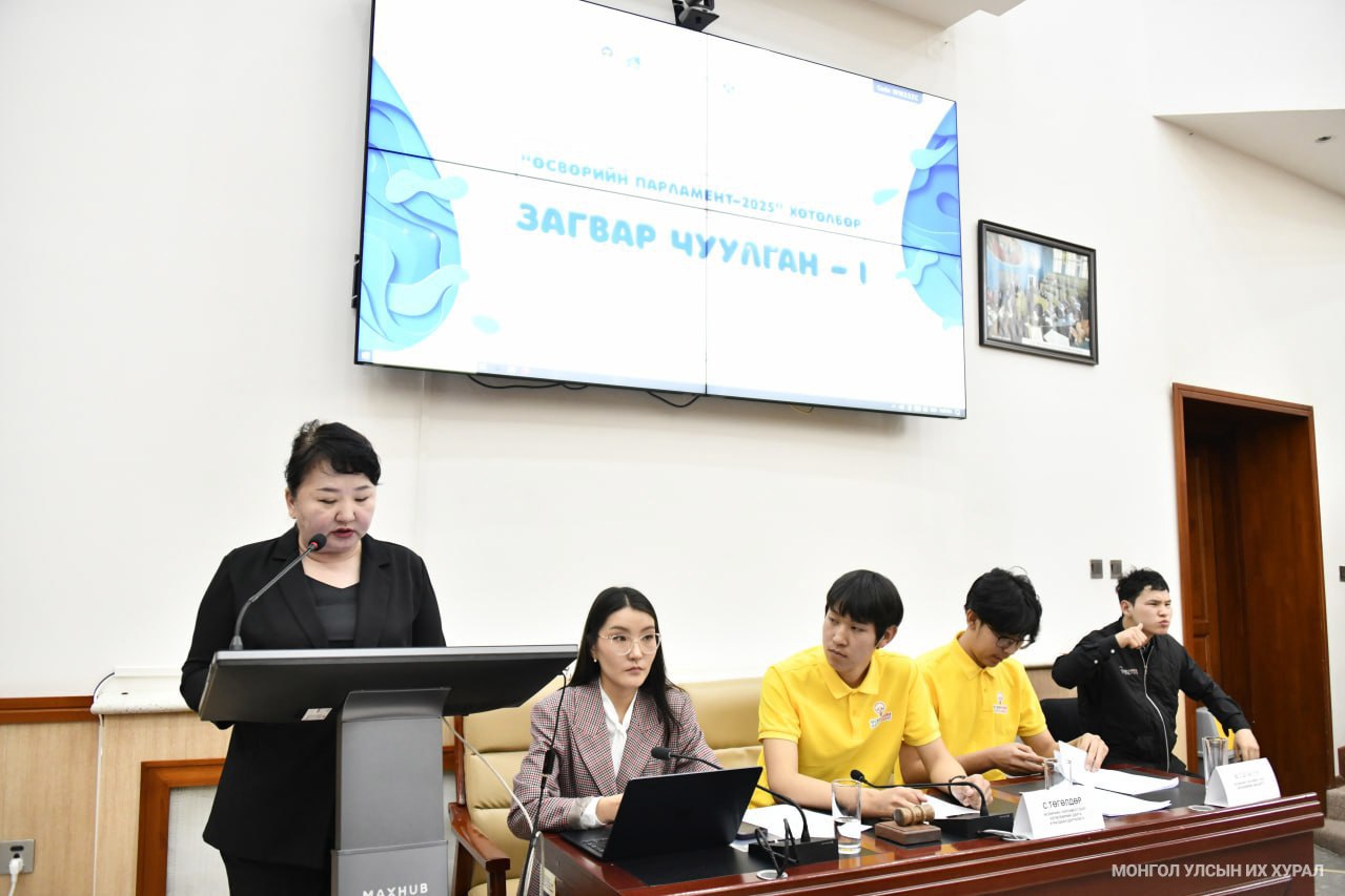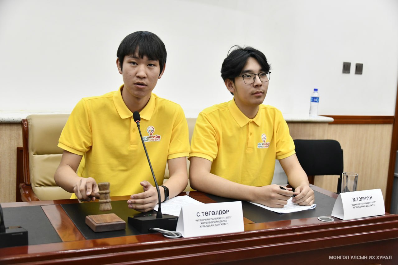“Өсвөрийн парламент-2025” хөтөлбөр нийт гурван удаагийн загвар чуулган зохион байгуулах бөгөөд чуулган тус бүрээс гарах санал, зөвлөмжийг нэгтгэн холбогдох Улсын Их Хурлын Байнгын хороодод уламжлах юм.