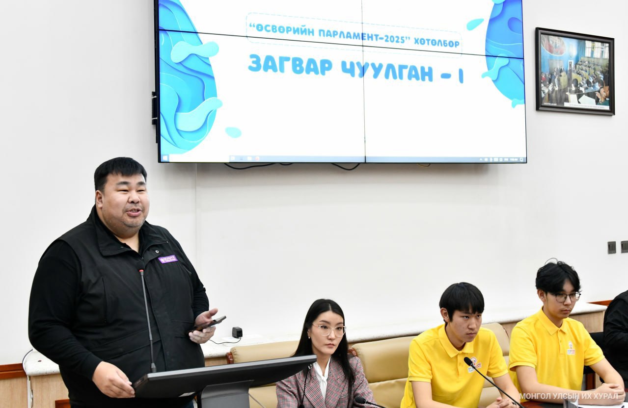 “Өсвөрийн парламент-2025” хөтөлбөрт Монгол Улсын 21 аймаг 9 дүүргийн ерөнхий боловсролын сургуулийн 11-12 дугаар ангийн 126 сурагч сонгогдон оролцож байгаа билээ.