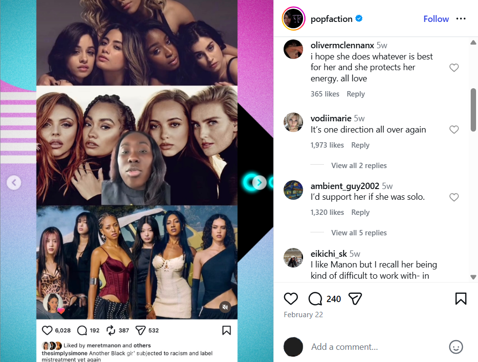 Хэдийгээр "эрүүл мэндийн шалтгаан" гэж тайлбарлаж байгаа ч EYEKONS (фенүүд) дунд эргэлзээ байсаар байна. Манон "Lone Black Girl" буюу охидын хамтлаг дахь цорын ганц өнгөт арьст гишүүнд тулгардаг бэрхшээлийн тухай постыг "like" дарсан нь энэ асуудлыг улам хурцатгав.
