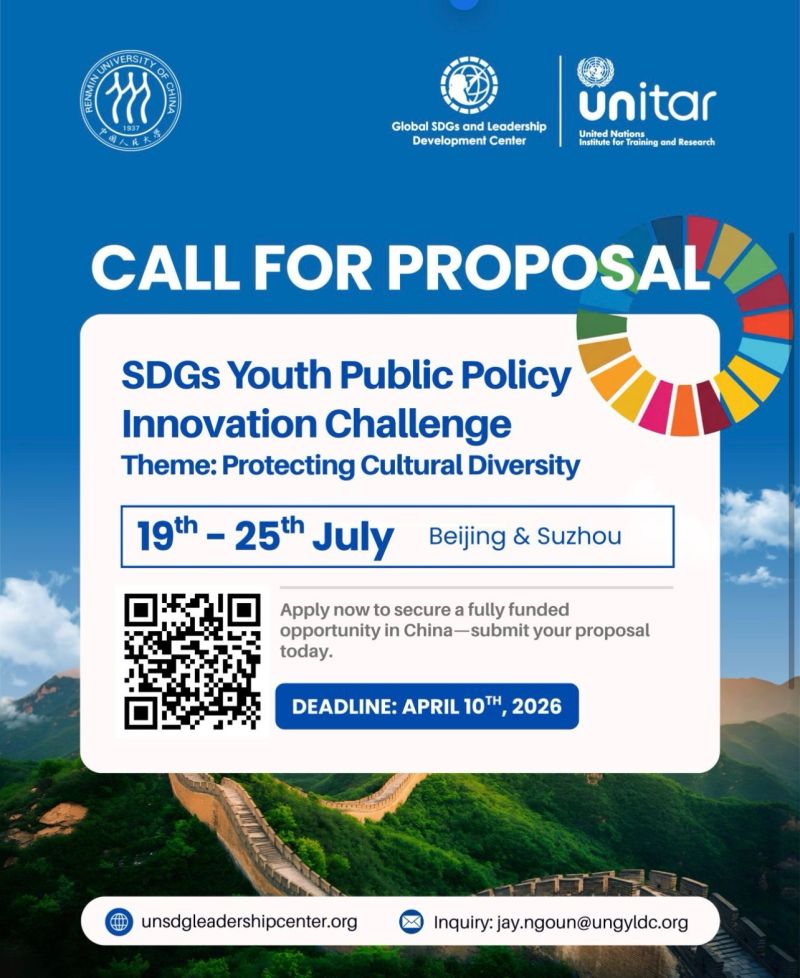 "SDGs Youth Public Policy Innovation Challenge 2026" хөтөлбөр сайн дурын залуусыг олон улсын түвшинд хүлээн зөвшөөрөгдөх, Хятад улсад төслөө танилцуулах бүрэн санхүүжилттэй боломжийг олгоно.