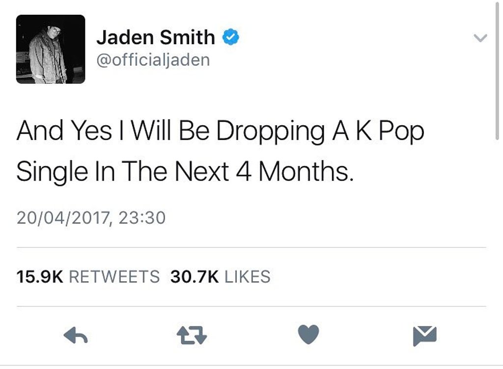 Тэрээр өөрийн твиттер хуудсаараа дамжуулан “Үнэн хэрэгтээ би Кпоп дуучин болохыг хүсдэг” хэмээн жиргэж байсан удаатай. Мөн 2013 онд Жейден өөрийн аав Вилл Смитийн хамт YG энтэртайментэд айлчилж, Кпоп урсгалын томоохон төлөөлөгчид болох Gdragon, T.O.P, CL, Taeyang нартай уулзаж байжээ.