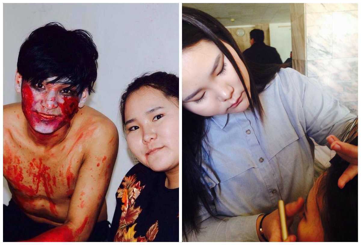 - Бид нар Оросын "Гримм" гэдэг театрын будгаар нүүр хувиргалтаа хийдэг. Анх энэ будгаа аваад ид шидийг нь үзэх гээд янз бүрийн хөхрөлтийн зураг харж нүдэн дээрээ гаран дээрээ хаа сайгүй хөхрөлт хийж үзэж байсан. Битүү шархаар л нүүр хувиргалтаа эхлүүлж байсан даа.