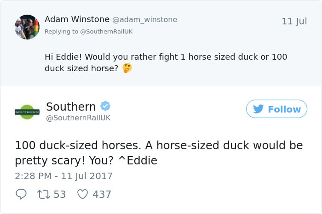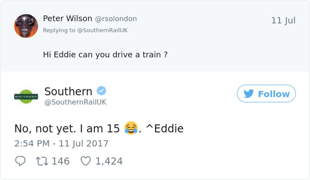 Учир нь тэд сошиал хаягуудаа хөтлүүлэхээр нэгэн хүүг ажиллуулж эхэлжээ. Түүнийг Эдди гэдэг бөгөөд энэ албанд томилогдсоноос нь хойш судалгаагаар тус галт тэрэгний компанийн үйл ажиллагаанд зорчигчид, иргэд эерэг үнэлгээг өгч улам алдартай болжээ.