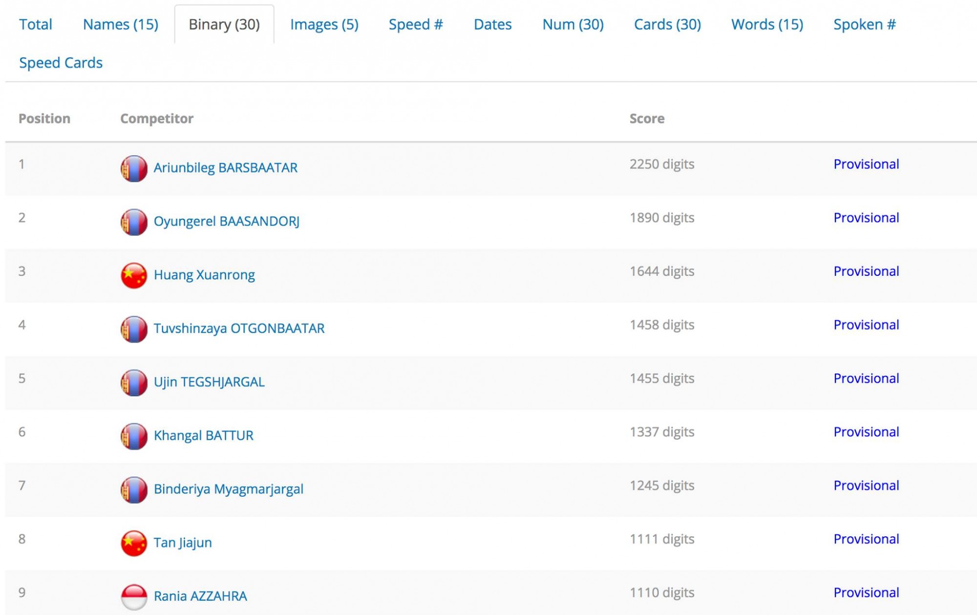 Ой тогтоолтын Ази тивийн аварга шалгаруулах нээлттэй тэмцээн Хонгконгод болж байгаа юм. Энэ тэмцээнд оролцож буй монголын баг тамирчид гурван төрлийн байдлаар боломжит 27 медалийн 18-ыг нь хүртжээ. Тодруулбал,
