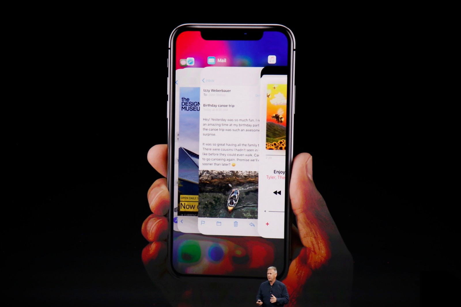 5,8 инчийн хэмжээтэй 2436х1125 харьцаатай OLED дэлгэц нь 458 ppi нягттай болжээ. Үндсэн товчлуур байхгүй болсон учраас зарим нэг үйлдлийг хийх зарчим өөрчлөгдсөн аж. Жишээлбэл аппликейшнээс гарахын тулд дэлгэцийн доод хэсгээс хуруугаараа дээш татах ёстой.