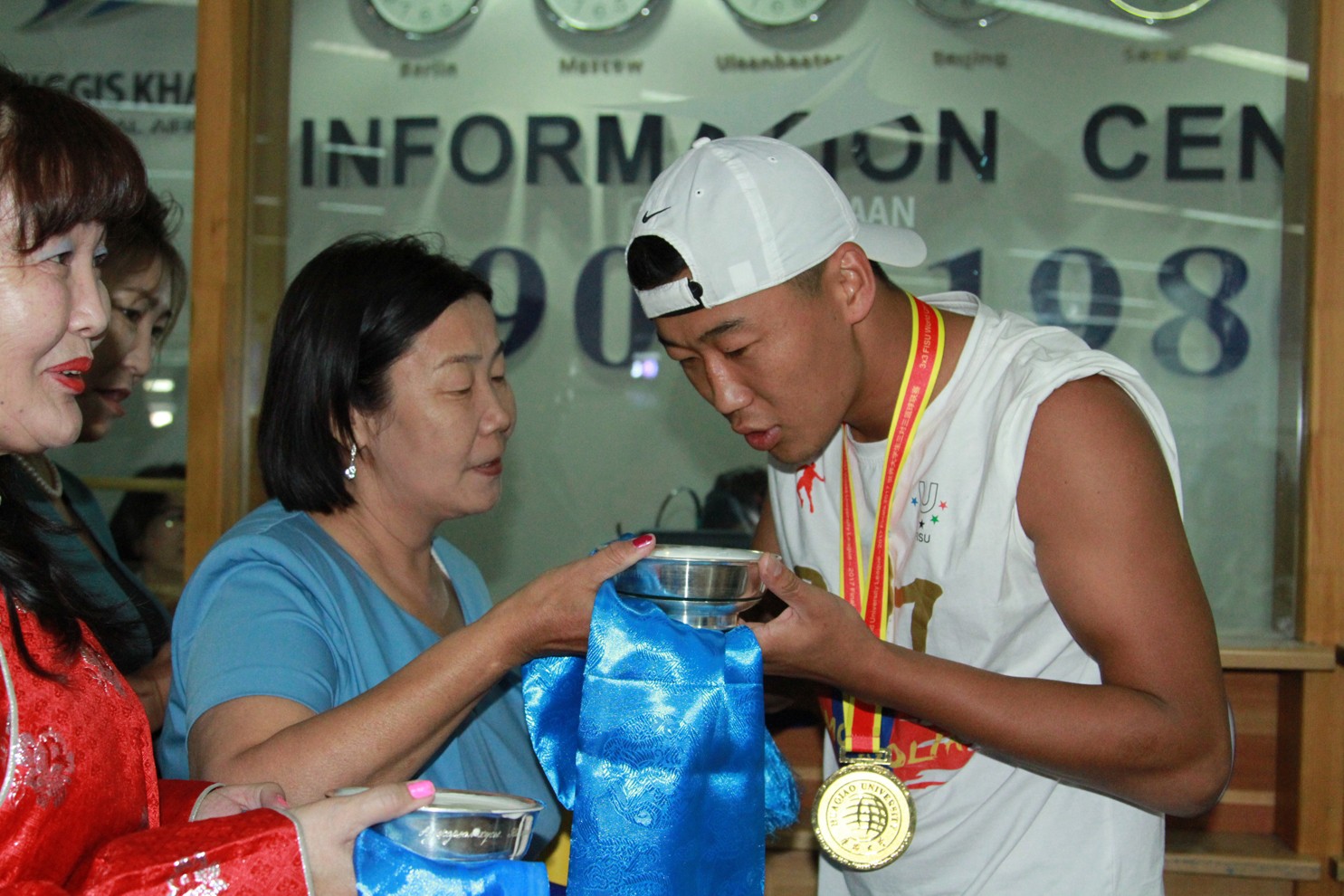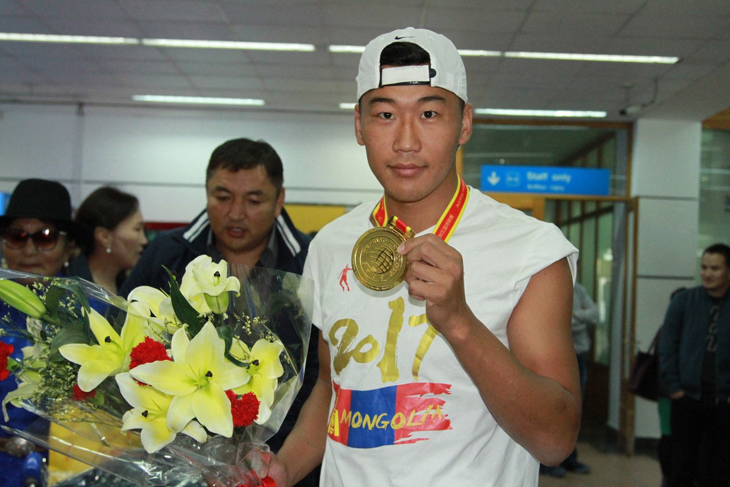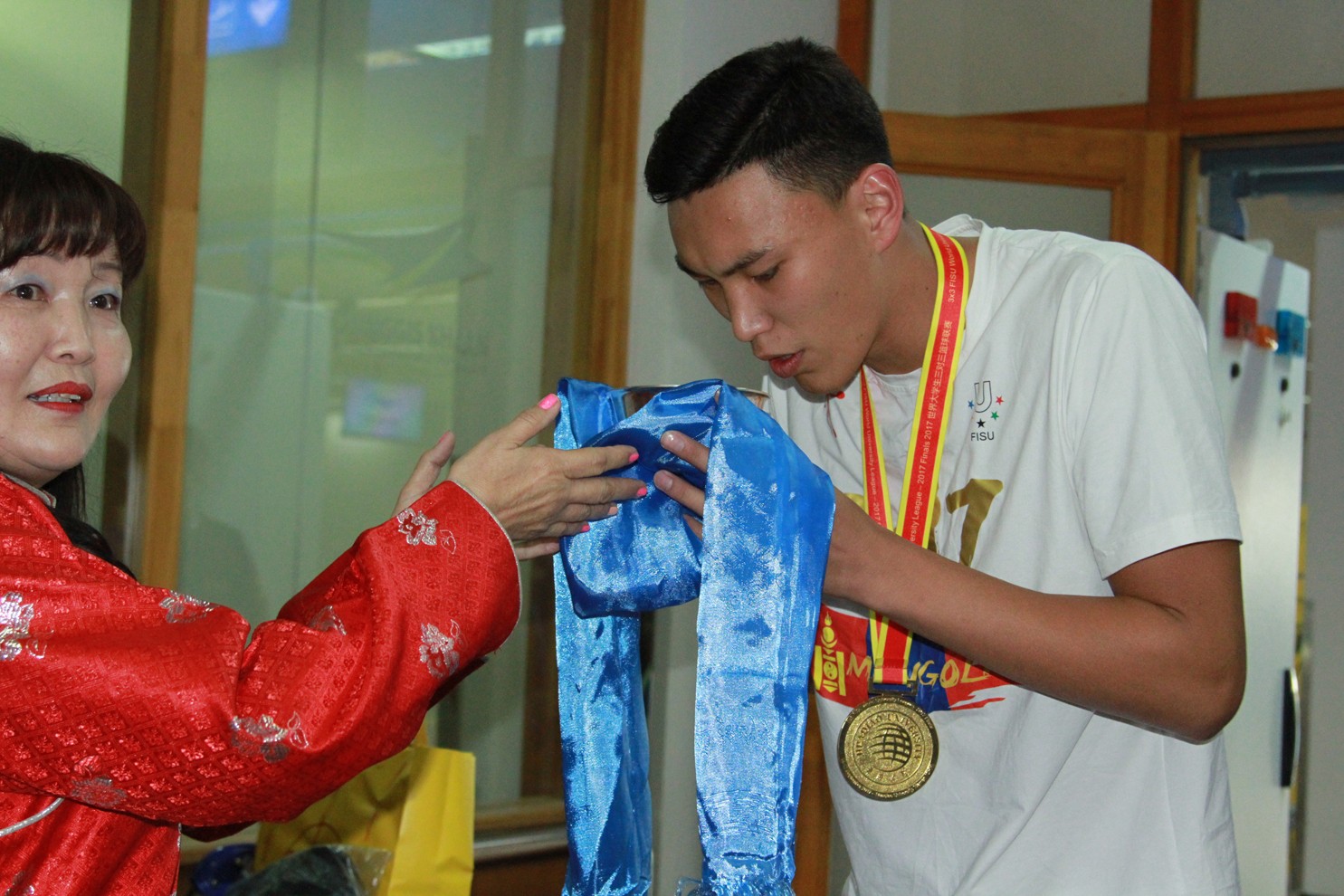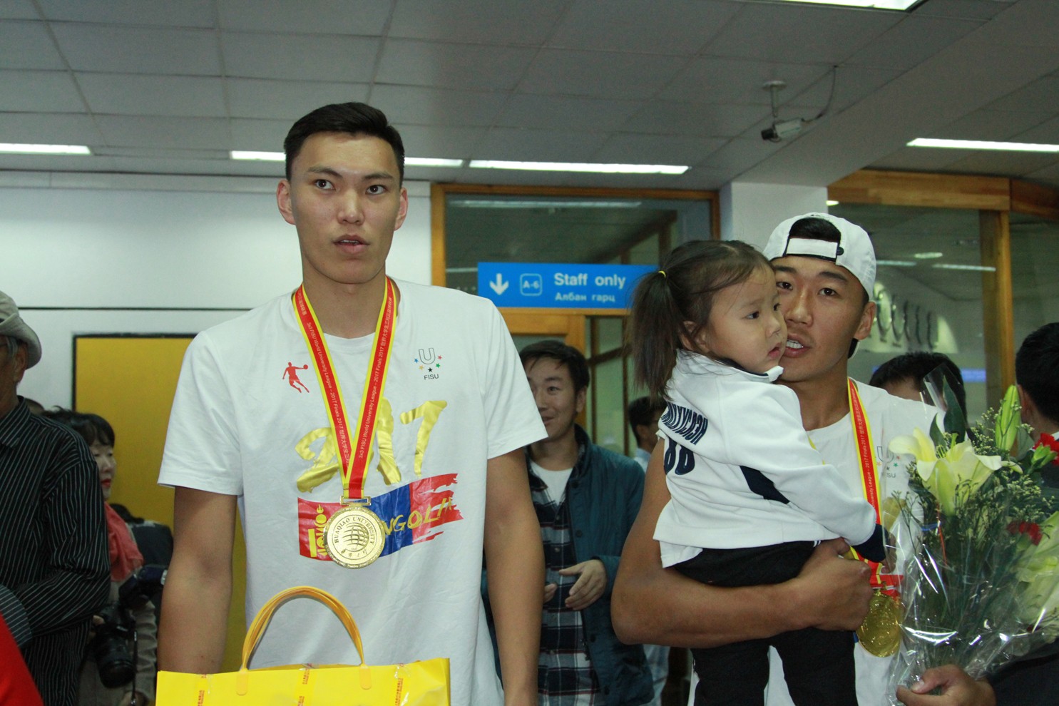 Түүхэн амжилтыг гаргаад ирсэн Монгол Улсын оюутны шигшээ багийн тамирчид болох О.Энхбаатар, Б.Наранбаатар, Б.Батзолбоо, Ц.Отгонжаргал, дасгалжуулагч С.Тулга нарыг гэр бүлийнхэн болон хамт олон нь өнөөдөр угтан авлаа.