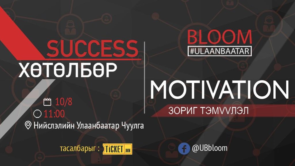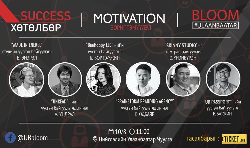 Тэгвэл UB Bloom - Success хөтөлбөрийн эхлэл, Motivation арга хэмжээ нь залууст боломжийн цар хүрээг таниулах, санаа өвөрлөж явдаг залууст дардан замаар урагшлах боломжийг таниулахын зэрэгцээ шинэ хамт олонтой болох болон бизнесийн хамрагчаа олох бололцоог гаргаж өгч байгаа аж.