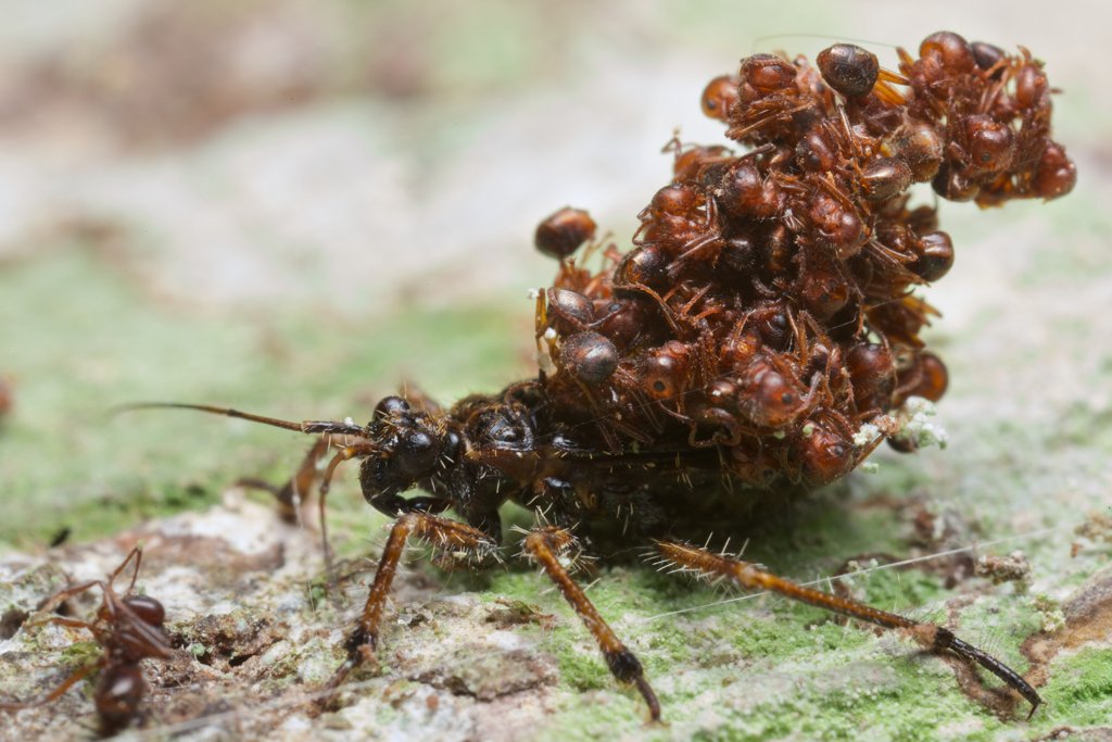 1. Acanthaspis Petax буюу нэгэн төрлийн шавьж өөрөөсөө махчин амьтдыг төөрөлдүүлэхийн тулд үхсэн шоргоолжнуудыг нуруун дээрээ авч явдаг.