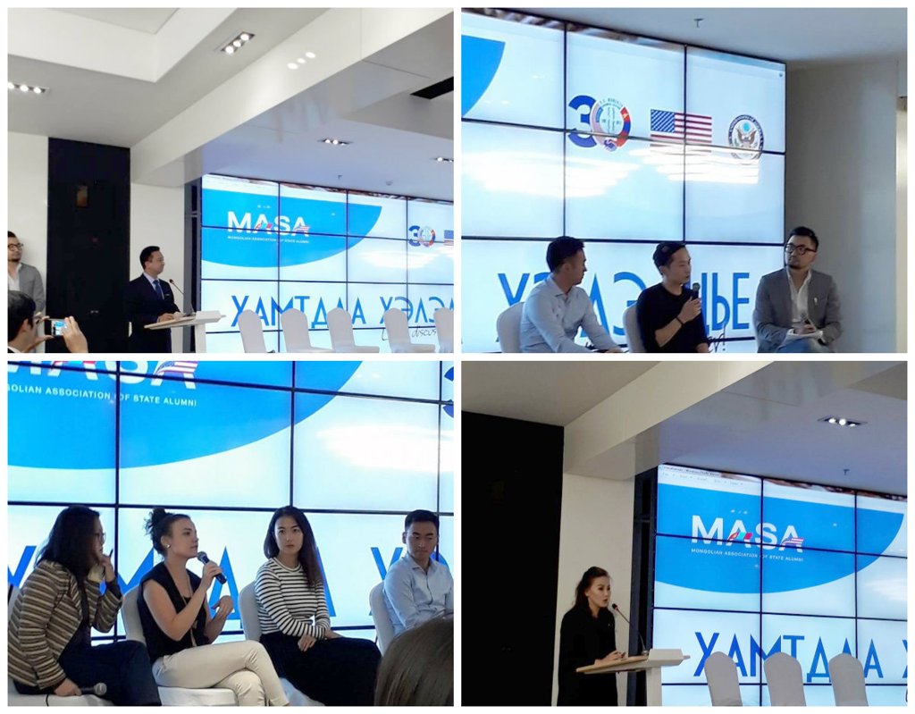"Америк дах Монгол оюутан залуусын холбоо"-ноос "Хамтдаа хэлэлцье" цуврал лекцийн сүүлийн үйл ажиллагаагаараа АНУ-ын элчинтэй хамтран залуу бизнес эрхлэгчдийг дэмжих тэдэнд зөвлөгөө өгөх зорилгоор Хөвсгөл нуур зочид буудалд зохион байгууллаа.