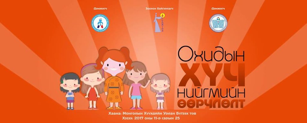 Дэлгэрэнгүй: ОХИД, ЭМЭГТЭЙЧҮҮДИЙН ЭСРЭГ ХҮЧИРХИЙЛЛИЙГ БУУРУУЛАХ ОЛОН УЛСЫН ӨДӨР-ийг тохиолдуулан ГҮНЖ төв "Долоон гарагийн тэмдэглэл", "Шантралгүй урагшил" номын зохиогч Ү. Оюунзулын санаачлагаар Нийслэлийн Боловсролын Газар, Хүүхдийн Урлан Бүтээх төвийн дэмжлэгтэйгээр “ОХИДЫН ХҮЧ-НИЙГМИЙН ӨӨРЧЛӨЛТ” 1000 охидын уулзалтыг 2017 оны 11 сарын 25-нд 12-14 цагт, 15-17 цагийн хооронд зохион байгуулах гэж байна.