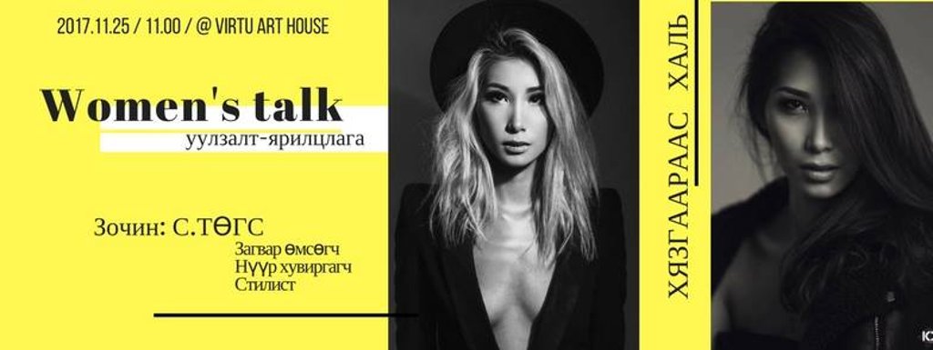 Бүсгүйчүүддээ зориулан зохион байгуулдаг WOMEN'S TALK сургалт-уулзалтын 11 сарын хүндэт зочноор Загвар өмсөгч, нүүр хувиргагч, стилист С.Төгс оролцохоор боллоо.