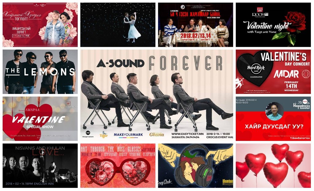 Гэгээн хайрын өдрөөр хайртай хүнтэйгээ хамт цагийг хэрхэн өнгөрүүлэхээ шийдэж амжаагүй явна уу. Хундага дарстай, романтик үдшийн зоог, хотын гудамжаар хөтлөлцөн алхахаас эхлээд олон зүйл хийж болохоос гадна Улаанбаатар хотод болох олон төрлийн үйл ажиллагааг энд нэгтгэн хүргэж байна.