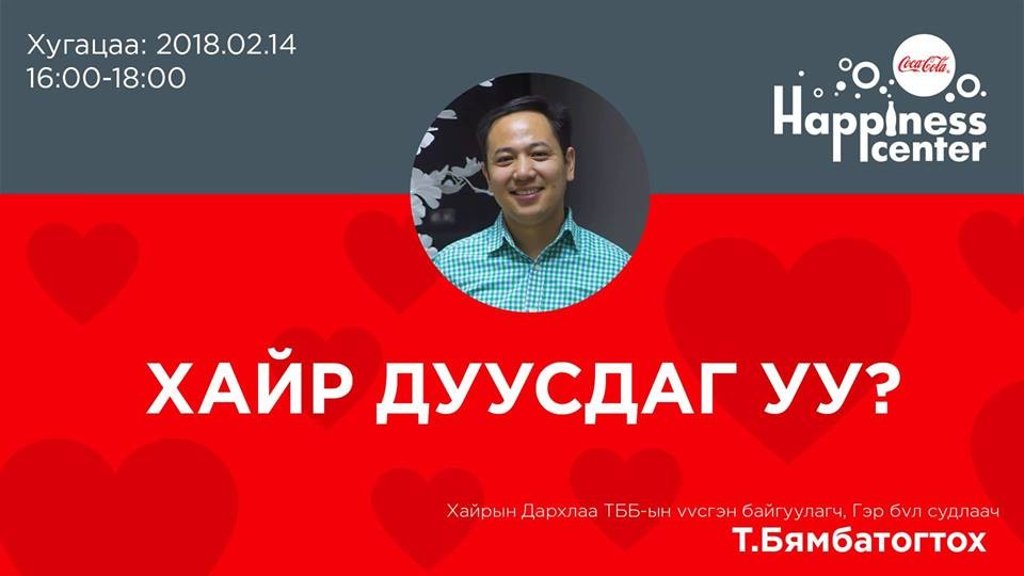 Энэ талаар тайлбарласан сонирхолтой лекц уулзалт хийхээр "Хайрын Дархлаа" ТББ-ын үүсгэн байгуулагч, гэр бүл судлаач Т.Бямбатогтох та бүхэнтэй “Хайр дуусдаг уу?” сэдвээр ярилцах гэж байна.
