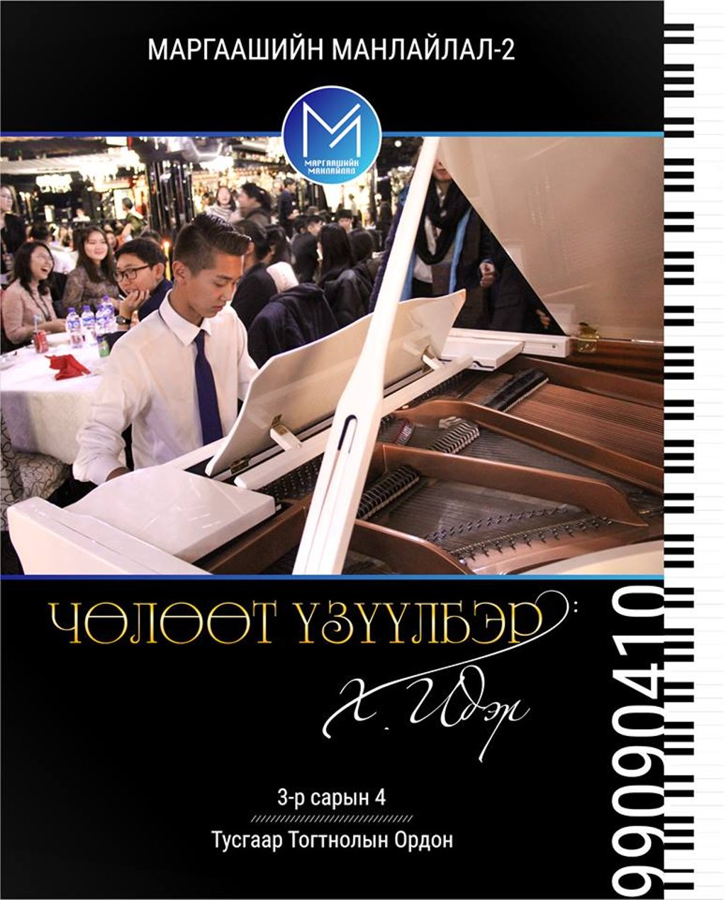 Манай арга хэмжээний чөлөөт үзүүлбэрээр Монгол Дархлаа төслийн санаачлагч, НҮБ-ын загвар хуралдаанд улсаа төлөөлөн оролцсон Монголын хамгийн анхны залуу болох Хосхүүгийн Идэр төгөлдөр хуурын аяыг сонгодог хөгжимүүдтэй хамт маш гайхалтай тоглолтыг бид бүхэнд толилуулах болно.