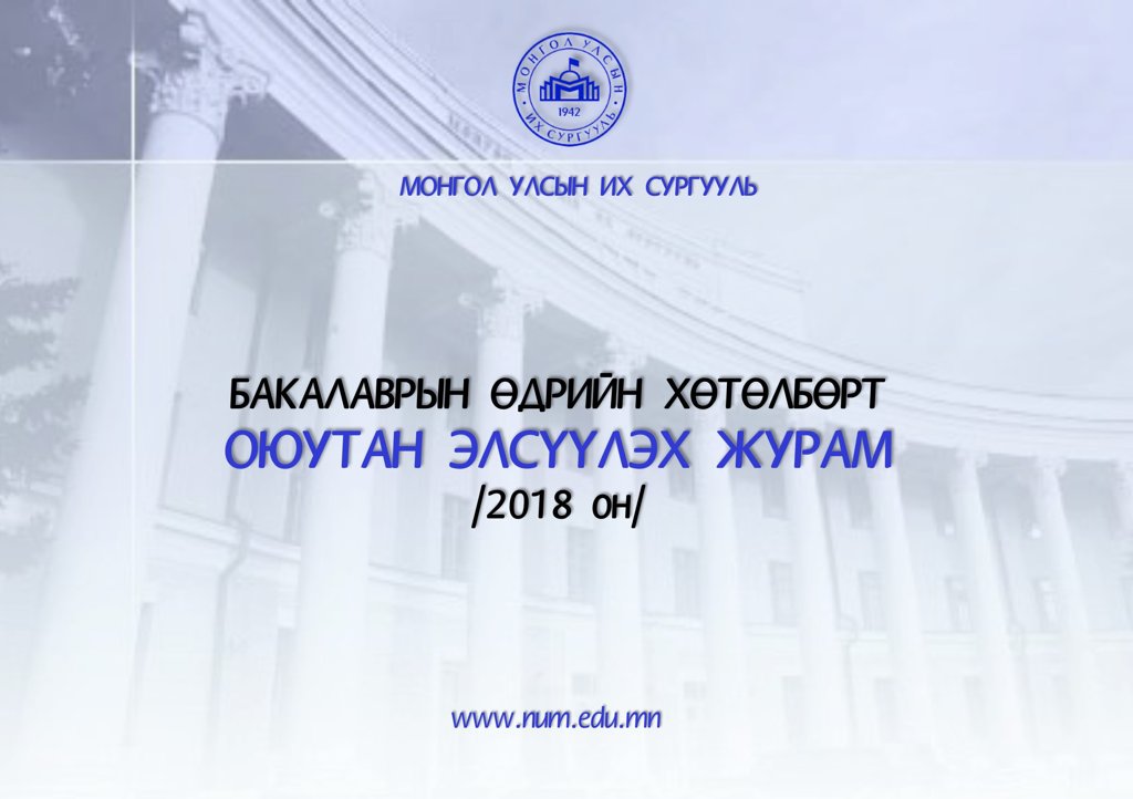 СОНГОХ БОЛОМЖТОЙ БАКАЛАВРЫН ҮНДСЭН МЭРГЭЖЛИЙН ХӨТӨЛБӨР |