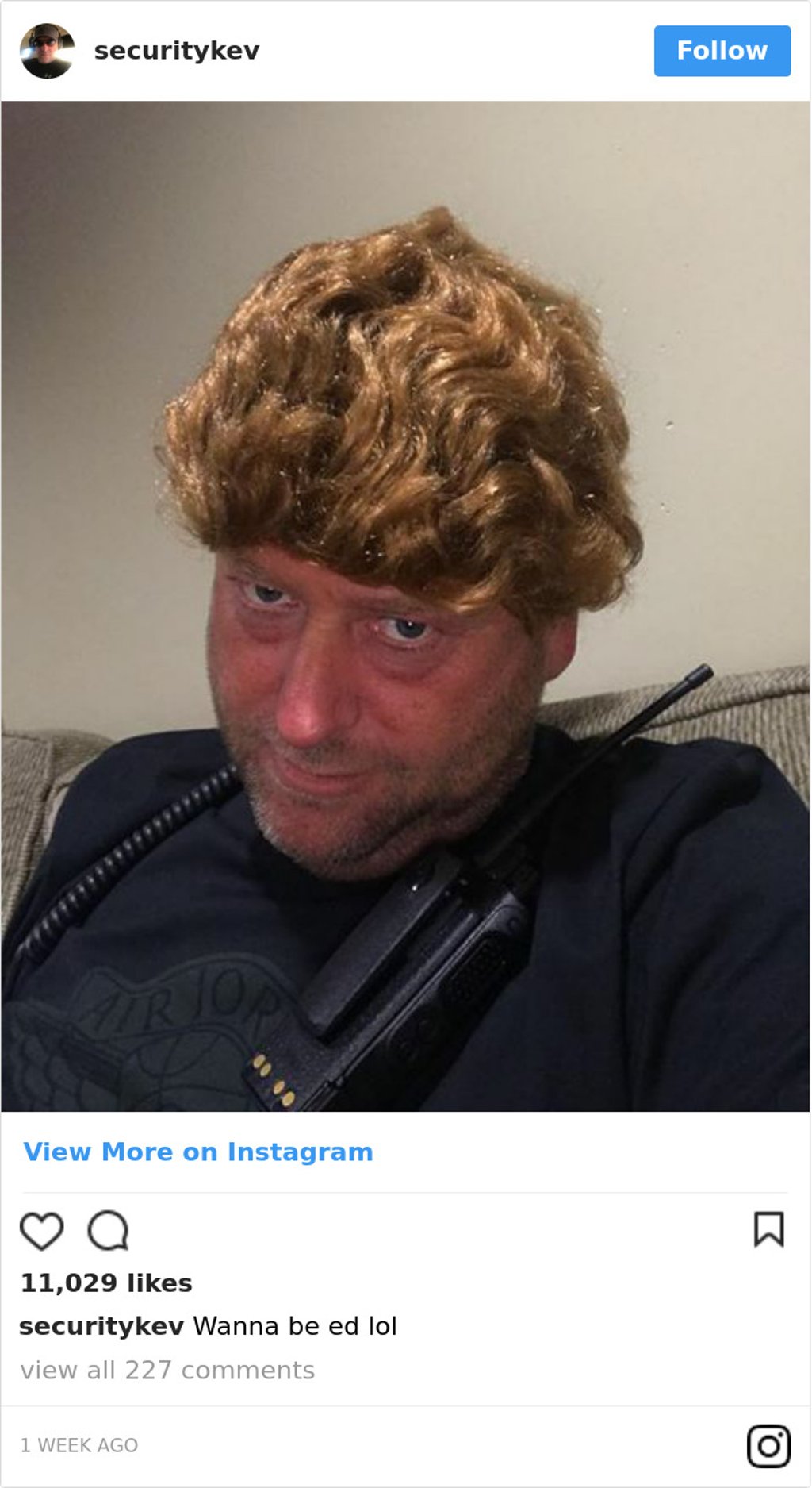 Дуучин Эд Ширан түр хугацаанд хувийн бие хамгаалагчгүй байсан нь түүний шүтэн бишрэгчдийн санааг ихээхэн зовоожээ. Иймд тэрээр шинэ би хамгаалагчаараа Кэв (Kev) хэмээх нэгэн залууг томилжээ. Алдарт дуучинтай бүхэл аялан тоглолтын үеэр түүний дэргэд байж аюулгүй байдлыг хамгаалагч залуу маань инстаграм хаягаа саяхан нээсэн бөгөөд өөрийн инстаграм хаягаар олны анхаарлыг сүүлийн үед ихэд татаад байна.