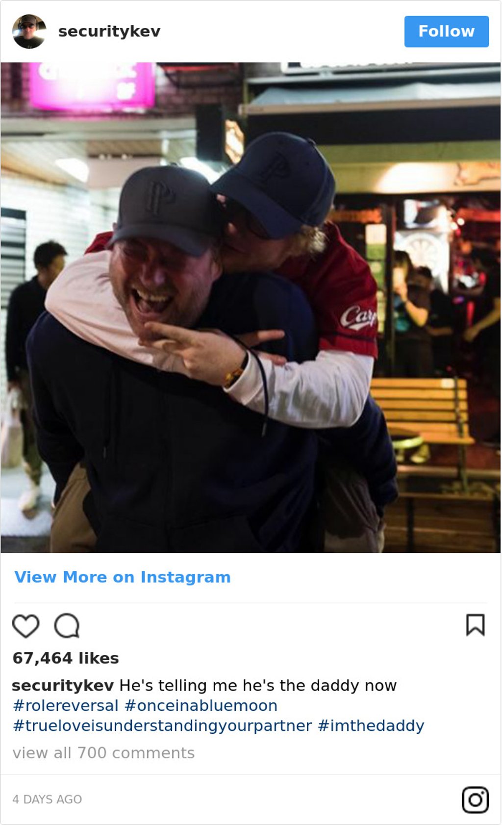 Сайн анзаарвал Кэв нийтэлсэн ихэнх зургийнхаа доор #imthedady гэж бичдэг ажээ.