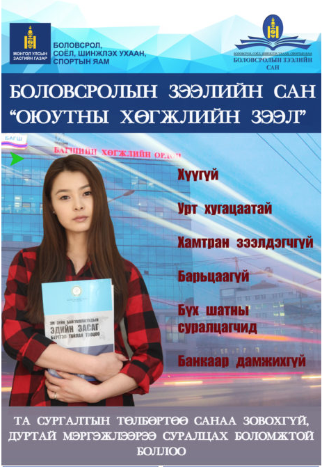 Оюутнууд болон 2018-2019 оны хичээлийн жилд шинэ оюутан болох сурагчдад сургалтын төлбөрөө ажлын байран дээр гараад төлөх нөхцөл бүхий Оюутны хөгжлийн зээлийг танилцуулж байна.
