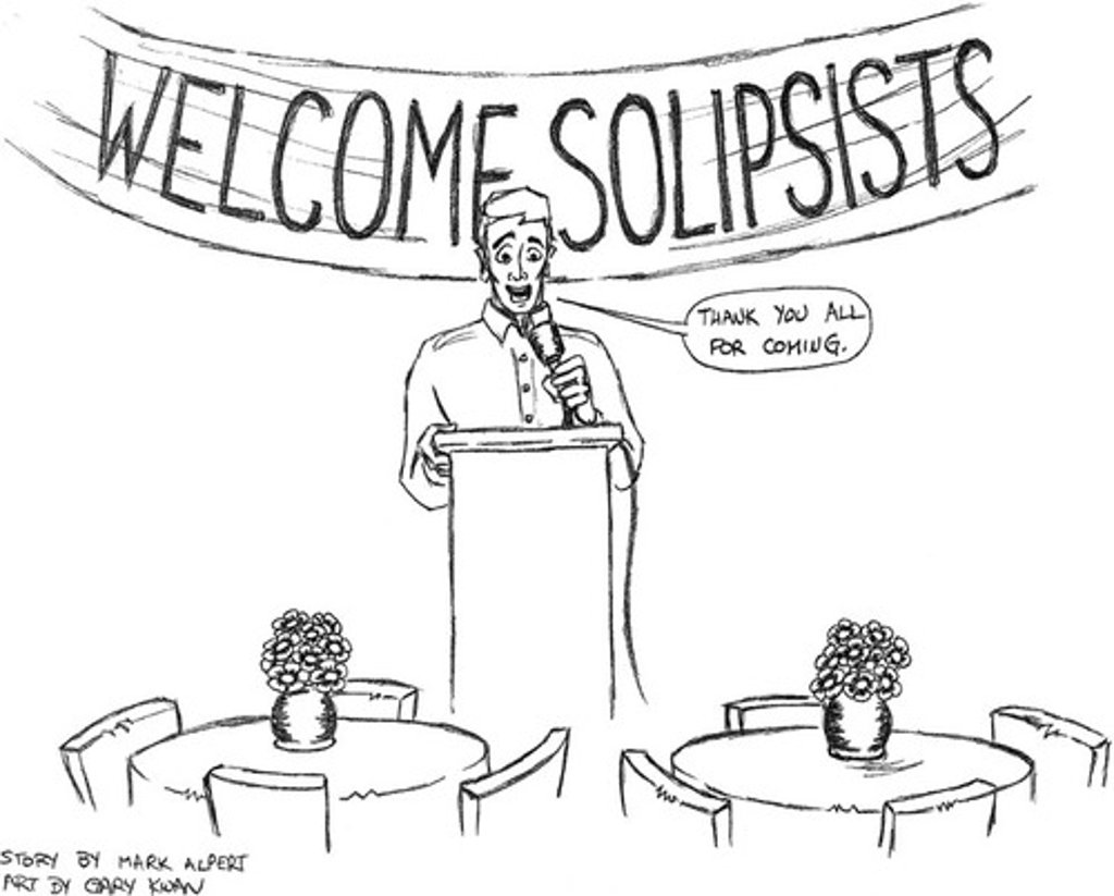 Солипсизм нь философийн онол бөгөөд, оюун ухаанаас өөр юу ч оршин байдаггүй хэмээдэг. Эхэндээ хөгжилтэй санагдах вий. Хэн хүрээлэн буй бодит орчлонг байдаггүй, байхгүй байсаар ч ирсэн гэж мэлзээд, зөвхөн миний ухаан л бодитой гэж зоригтой хэлж чадах бол?
