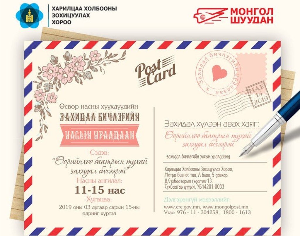Харилцаа холбооны зохицуулах хороо, Дэлхийн шуудангийн байгууллагаас жил бүр зарладаг өсвөр насны буюу 11-15 настай хүүхдүүдийн захидал бичлэгийн олон улсын уралдааныг “Өөрийнхөө баатрын тухай захидал бичээрэй” сэдвийн хүрээнд зохион байгуулж байна.