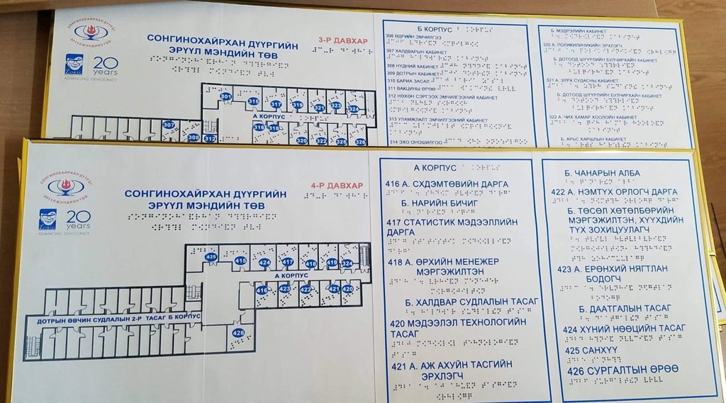 Олон улсын стандартын дагуу бол тус брайль үсгэн план зургийг төмөр материалаар хийдэг аж. Гэвч монголд төмөр материалаар хийх боломж байхгүй тул хулдаасан цаасан материалаар хийлгэжээ. Монголын хараагүйчүүдийн үндэсний холбоотой хамтран план зургийг хийж, хараагүйчүүдэд энэ талаар мэдээлэл өгсөн байна.