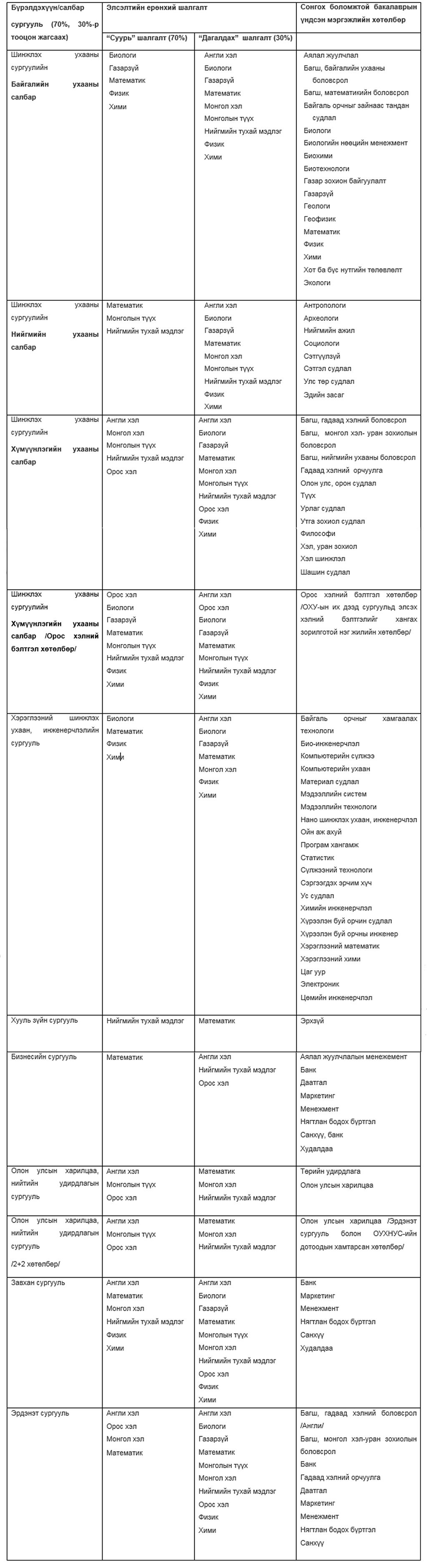 -Бакалаврын өдрийн хөтөлбөрийн элсэлт-