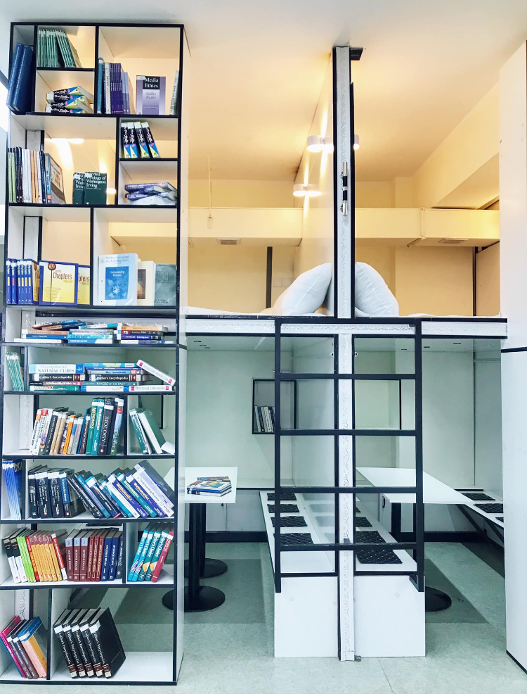 -Манай Анагаахын сургууль ашиглалтад орсноороо энэ байрны 6-р давхар нь бүтэн номын сан болж байгаа. Энэ номын сан 24 цагаар ажиллах зохион байгуулалттай. Номын сан чимээгүй орчинтой учир нозоорох, ядрах үе гардаг. Энэ үед нь түр амраах зорилгоор тав тухтай ор дэртэй унтлагын номын сан нээсэн. Онцлог нь хонож хичээлээ хийх боломжтой, өглөө босоод уух кофе, нэг удаагийн хэрэглээг шийдэж өгч байгаа.